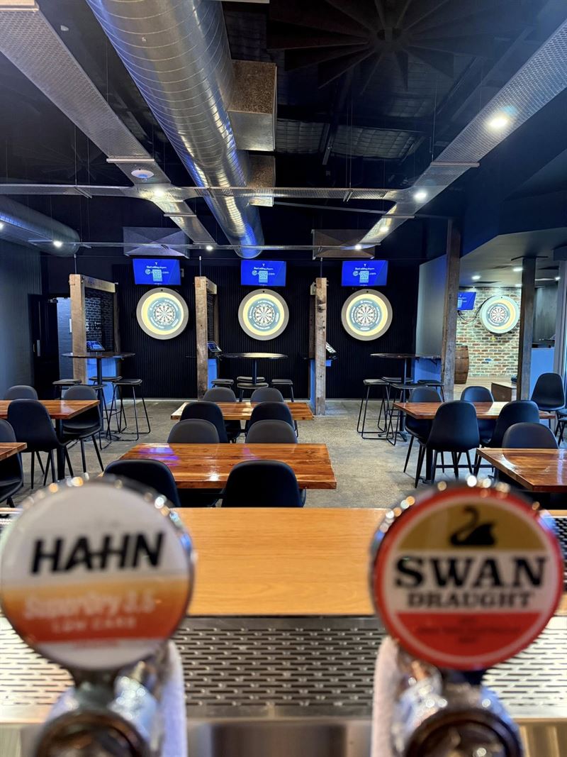 Nestled along Chapman Street in Geraldton, Bullseye Birdies is a lively, modern sports-bar destination brimming with energy and entertainment. The interior pulses with ambient lighting, large video screens broadcasting live sport and sleek zones dedicated to social play. One corner hums with five interactive electronic darts lanes (Dartsee), while another section houses a cutting-edge golf simulator that lets guests virtually swing across world-class courses. The bar counter is lined with vibrant cocktails and local brews and the aroma of freshly made pizza dough and scratch sauces drifts across the space. At Bullseye Birdies, casual dining and spirited competition live side by side, inviting friends, families and sports lovers alike to relax, connect and play.