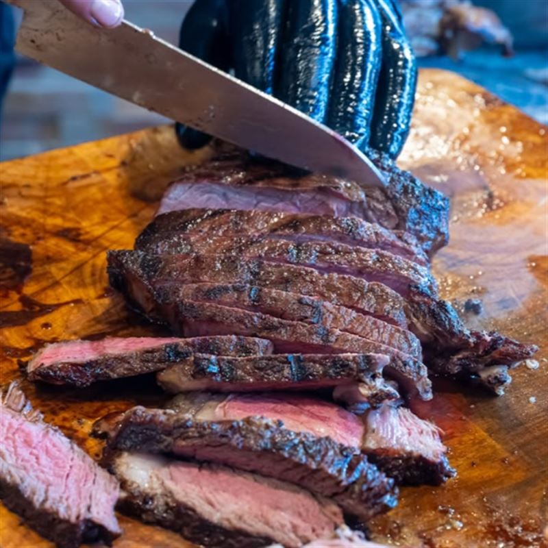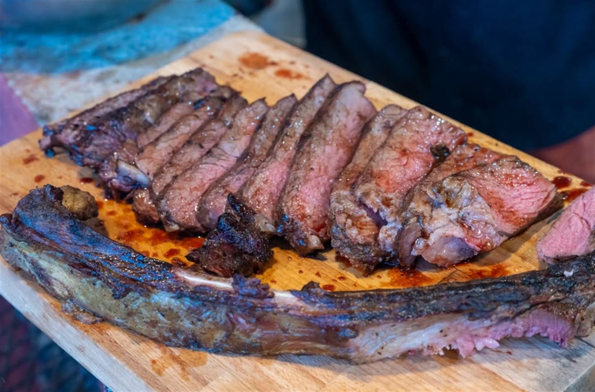 A premium MB4 porterhouse steak, slow smoked to perfection, then finished with a high heat reverse sear for a flavourful crust, caramelised fat cap and tender, juicy centre