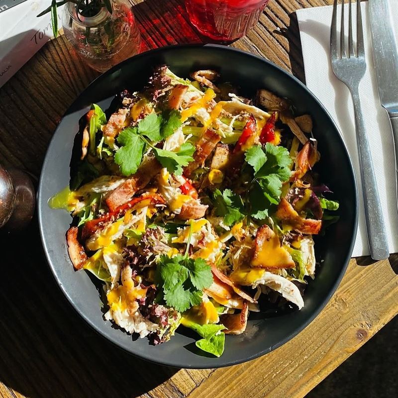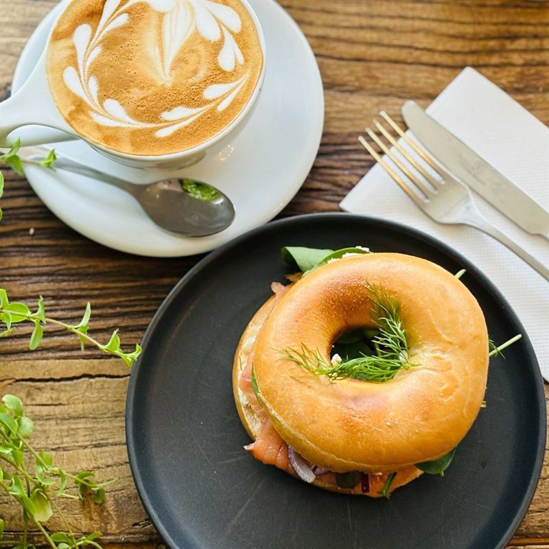 When passing through the picturesque town of Corryong heading to the snow or off to Phillip Island, a stop into Black Sheep on Hanson Street is a must. A combination of rustic charm and simplistic elegance is highlighted in a spacious dining area where cosy blond wood table settings and a wall of greenery set the scene for lingering over a bite and a brew. Perhaps start the morning with a big breakfast of bacon, poached eggs, mushrooms, chorizo, chutney and sourdough or the ham and cheddar cheese toastie with mustard on sourdough. An ever-changing seasonal menu focusing on quality produce inspires lunch options like a pork and sage sausage roll with chutney and salad, or the crunchy Vietnamese chicken salad with bean sprouts, coriander, spring onions, greens, fried shallots and nuoc cham.
