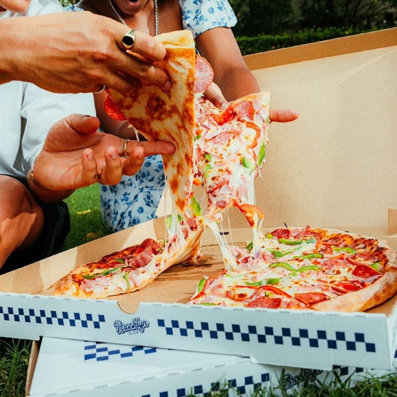 Brooklyn Slice on Kingston Road in Slacks Creek is where to head in Brisbane for New York-style pizza, made with hand-stretched dough for the ultimate crispy crust, loaded with the classic toppings you love. Find a diner-style vibe of red chairs, blue subway tiles and a mural dominating the feature wall as the tantalising aroma of pizza cooking wafts in the air; bring the whole family to share a pie, or order a slice solo to appease cravings. Snack on waffle fries, or mac and cheese balls before chowing down on pizzas topped with chicken, capsicum, onion, mushroom, mozzarella and a peri-peri swirl. Carnivores opt for the meat lovers – BBQ sauce, ham, meatballs, pepperoni and mozzarella, paired with cheesy bacon fries - or the Brooklyn with meatballs, mushrooms, pepperoni and cheese.