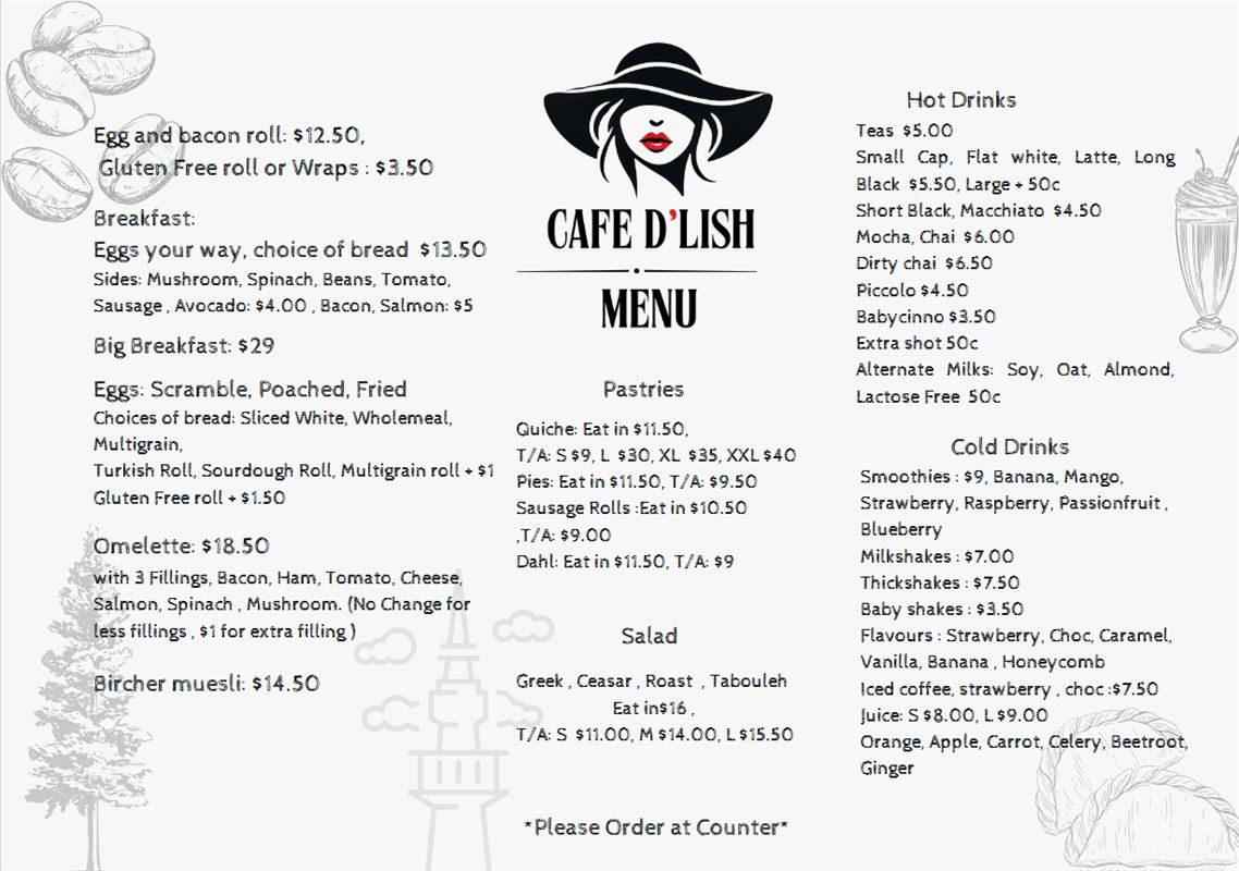 Cafe D'lish Menus/Downloads
