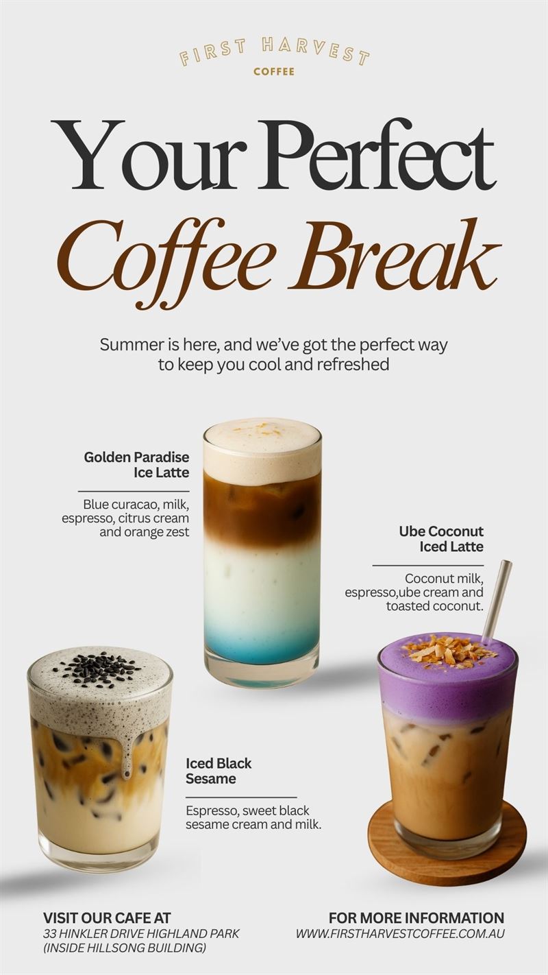 Tucked just off Hinkler Drive in the heart of Highland Park, First Harvest Coffee offers a calm yet vibrant haven for coffee lovers and community-minded locals alike. As you step inside, the warm scent of freshly roasted beans draws you to a well-designed brew bar where passionate baristas prepare each cup with care - every pour reflects an origin story, every roast a craft. The décor marries bright, open spaces with subtle details: timber finishes, greenery and natural light that encourage lingering, whether you're settling in for a brunch or grabbing a quick espresso. Start your day the right way with a breaky croissant with avocado, scrambled egg, herbed mushrooms, feta and bacon; or stop by later for a zesty chipotle chicken and cheese jaffle with red onion and baby spinach.