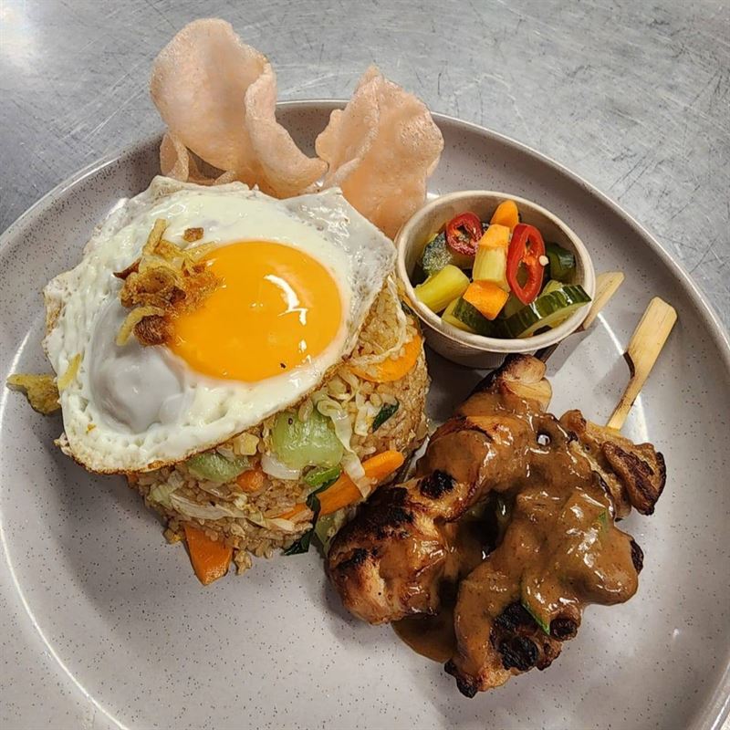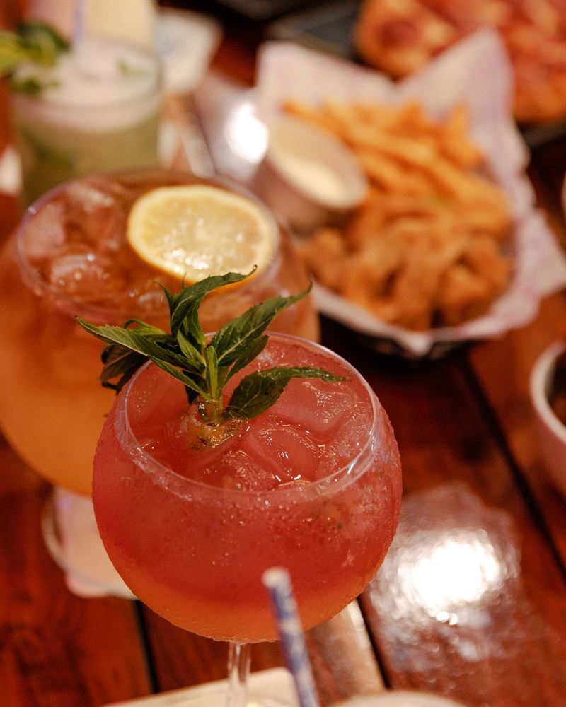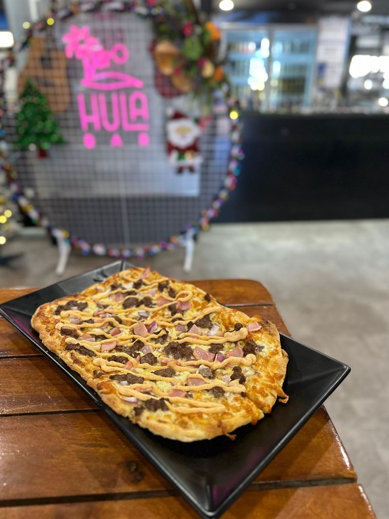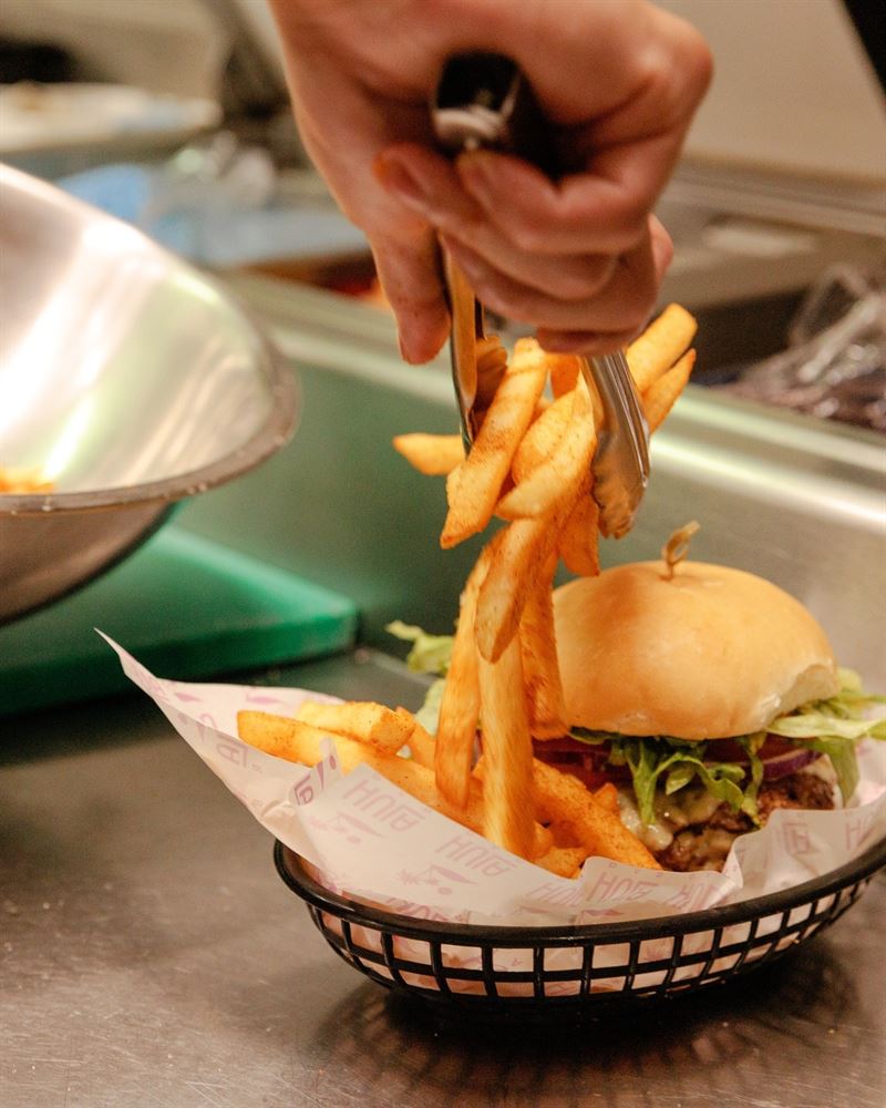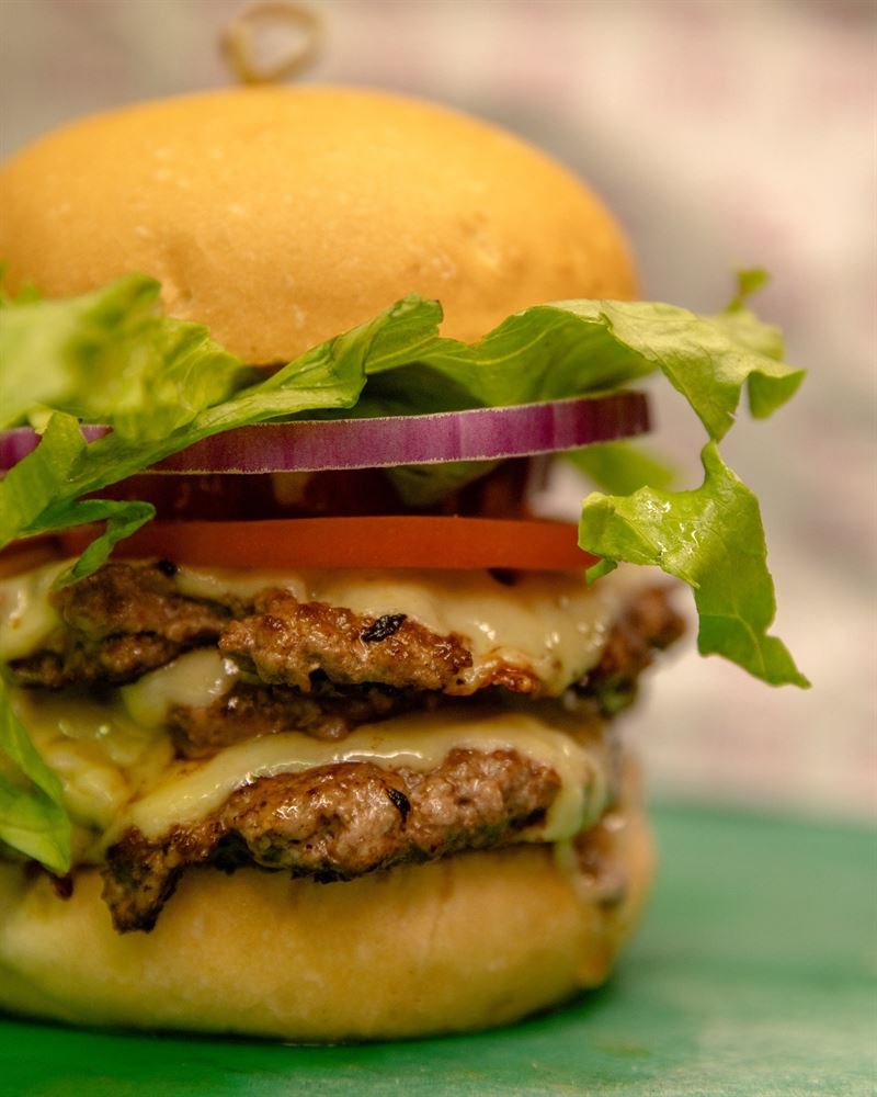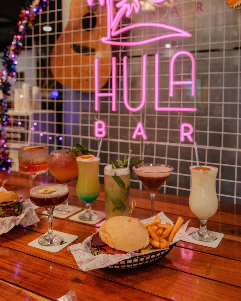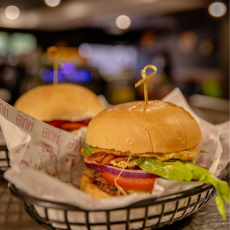 Hula Burger is made with smashed beef patty, lettuce, tomato, cheese, red onion and house sauce.