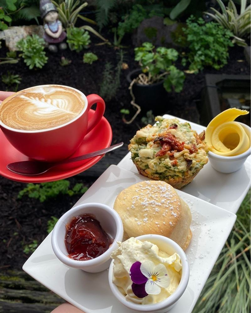 Nestled amid the quiet charm of the village of Nana Glen, Idle In Cafe on Nana Street feels like stepping into a well-loved local hideaway. The interior exudes warmth with exposed timber beams, weathered rustic furniture and an eclectic sprinkle of biker memorabilia lending it an easy-going character. Through wide windows, soft light filters onto mismatched tables where locals and travellers alike linger over mugs of freshly ground coffee. The covered courtyard, shaded and dappled in greenery, invites guests to slow down and relax to the tinkling sound of a stone water feature. Start your day with a corn fritter stack, bacon, avocado, sour cream and sweet chilli sauce; perhaps join a later crowd for a beef and bacon cheeseburger or a roast vegetable tart, served in crispy puff pastry.