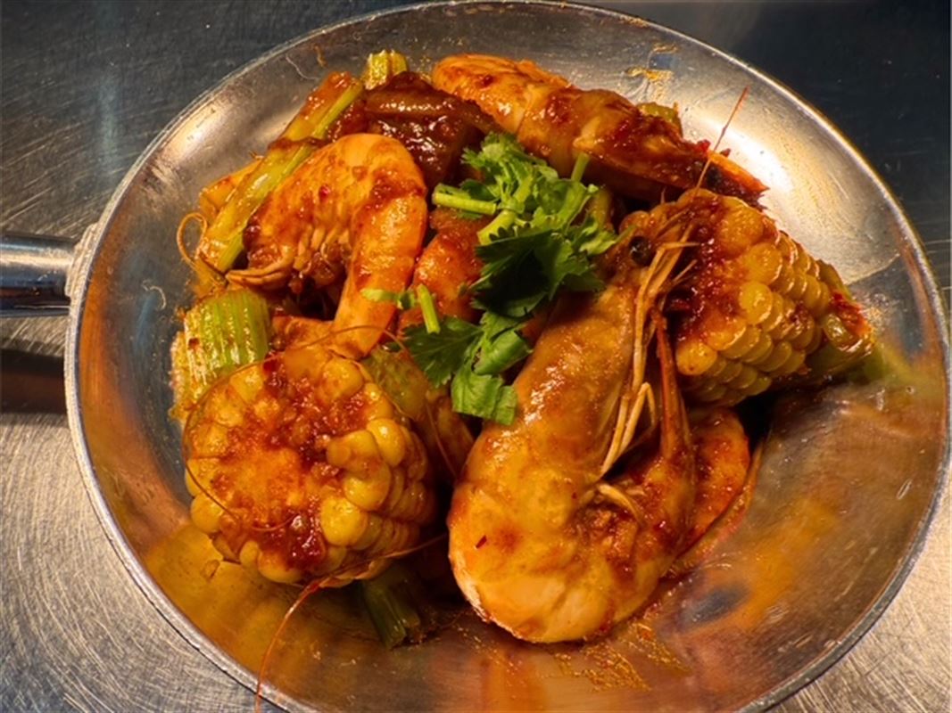 Traditional sour & spicy soup with kaffir lime leaf, lemongrass, galangal, mushrooms and tomato.