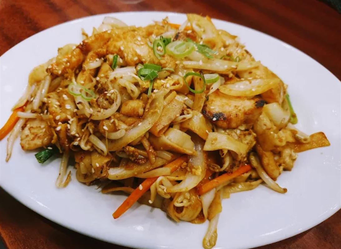 Satay Combination — a mouth-watering mix of chicken, beef, squid, king prawns, barbeque pork, and vegetables, all tossed in our rich, house-made satay sauce.