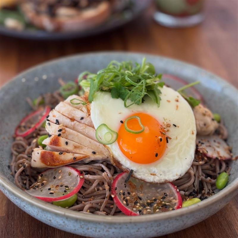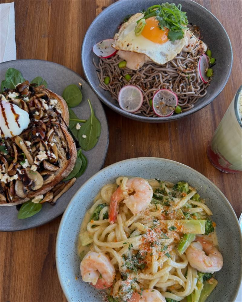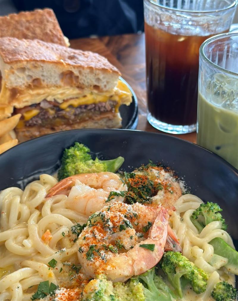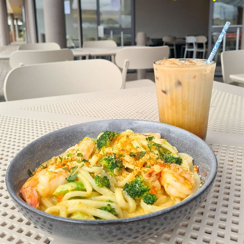 Tucked away on Prindiville Drive in Wangara, Nook & Co. Cafe feels like a calm oasis to refuel and recharge for the day ahead. As you push open the door, warm light spills onto concrete floors and timber accents, with potted greenery softening the edges, while the aroma of freshly ground beans mingles with hints of matcha and toasted bread. Wooden tables and trailing greenery craft a relaxed, modern-rustic vibe with large windows inviting natural light and in a quiet corner, you might find someone reading or tapping on a laptop. The menu leans into fusion and comfort — think soft focaccias, bowls of noodles with a twist, crisp salads and matcha creations. It’s the kind of place where you linger over a latte, start the day slowly, or drop in mid-afternoon for a moment of quiet indulgence.