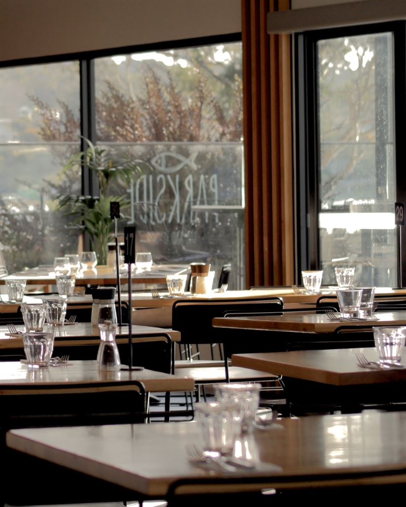 Nestled on St Helens Point Road, Parkside Bar and Kitchen occupies a prime position overlooking Georges Bay. The building’s clean lines and modern architectural touches echo the crisp coastal light of Tasmania’s east coast. Inside, floor-to-ceiling windows frame views of still waters and windswept gums, bringing the outside in. Whether seated at a timber communal table, tucked into a quiet corner, or alfresco on the sheltered deck, patrons feel part of the bay’s gentle rhythm. The menu leans into seasonal Tasmanian produce and fresh seafood, pairing refined flavours with honest, regional character. Stop in early for corn fritters, chutney, avocado, spinach and a fried chilli egg; dine later on creamy seafood chowder, or chipotle and maple pork baby back ribs, chips and salad.