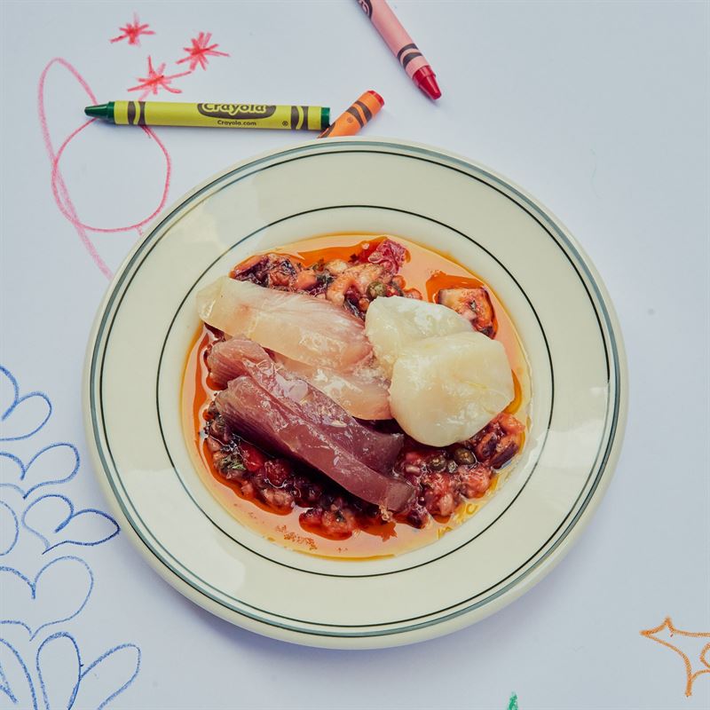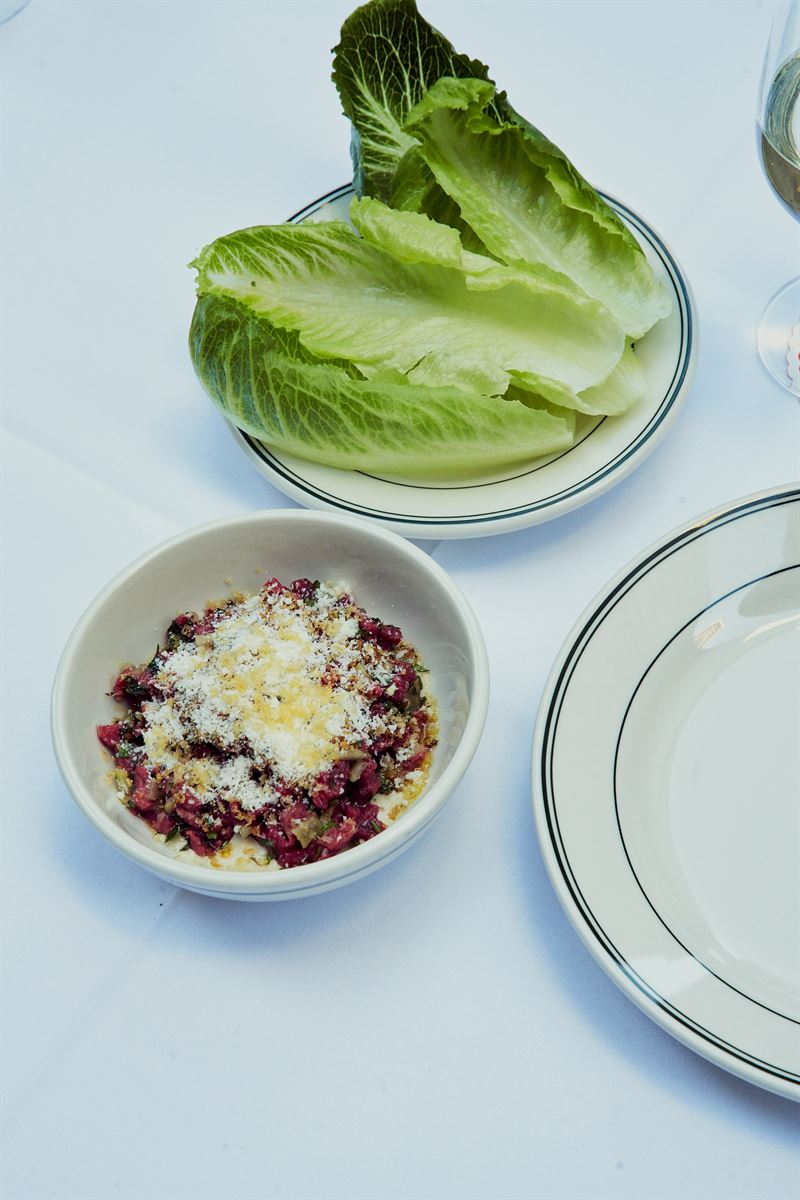 RAGÙ BIANCO, PAPPARDELLE, OREGANO, FENNEL BEEF TARTARE, CAESAR DRESSING, CURED YOLK, BABY GEM TIRAMISU, FRANGELICO, HAZELNUT.