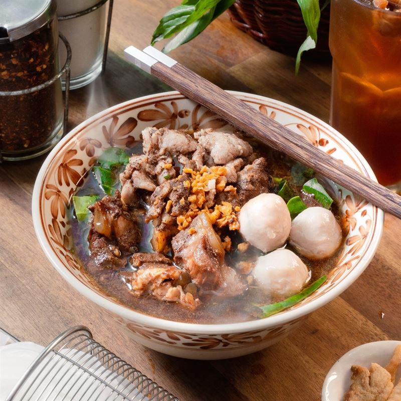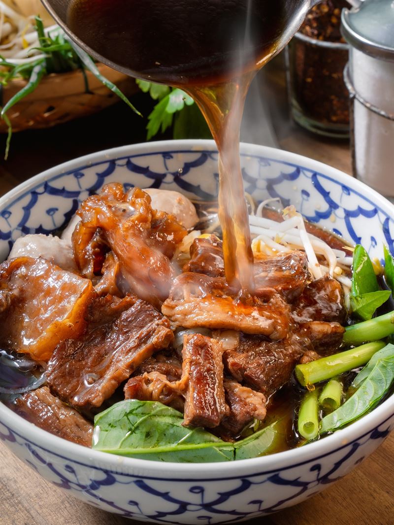 Boat Noodle Soup – a rich, savoury broth with tender noodles, beef and fragrant aromatic herbs.