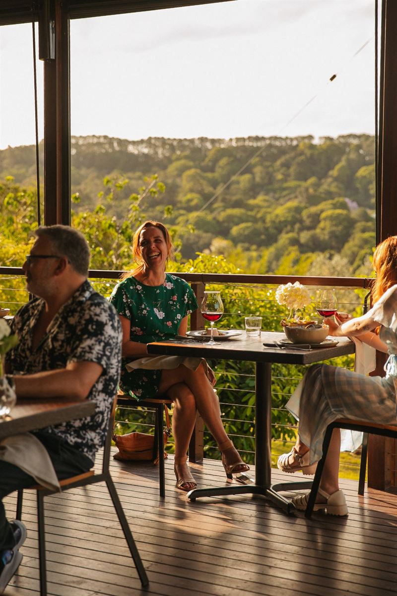 Chef-hatted dining showcasing the kitchen garden; sustainably sourced oysters and seafood; Speckle Park beef from nearby Bellingdale Farm; relaxed service and valley-to-sea views.