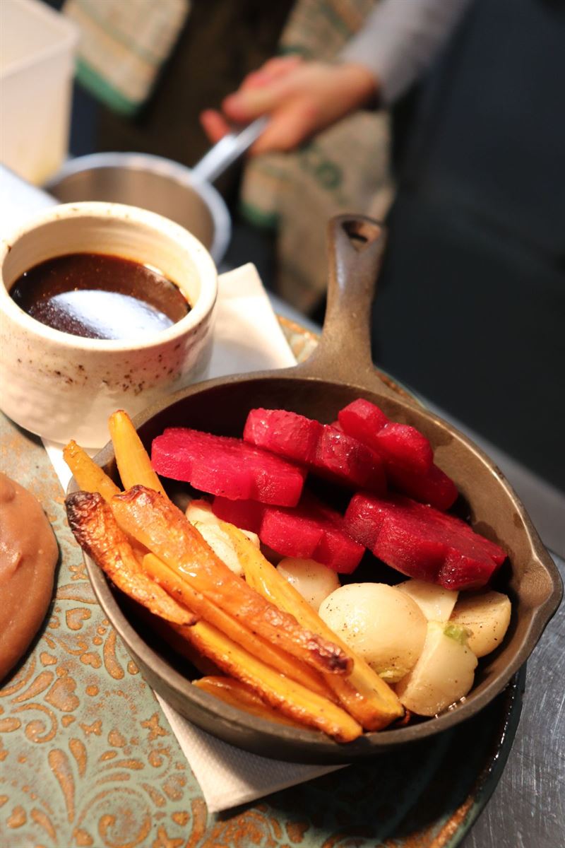 Another wonderful experience of dining at The Potager. We were seated near the fireplace such a warm and inviting location. We sipped GSM red wine. We started with a shared vodka cured trout with beetroot and coddled egg. Then I had Pork Belly which was moist an flavorsome and crackle to die for. My wife had Fish of the day. Saddleback Salmon with eggplant puree and kale chips. The size of the meals were plentiful and affordable. Do yourselves a favour and visit The Potager at Carool Jeff an Melissa Carool