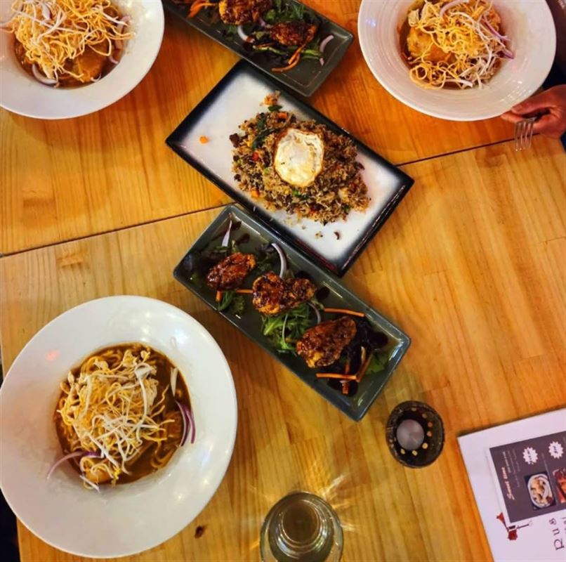 Rusty Iron Thai Restaurant on Goldie Street in Wynyard is a vibrant and welcoming spot that brings a touch of Thailand to Tasmania’s northwest coast. The space blends rustic charm with contemporary style - warm timber tones, metal accents and gentle lighting creating a cosy yet lively dining atmosphere. Aromas of lemongrass, chilli and coconut greet you as dishes burst with colour and freshness. Each plate is crafted with care, balancing spice and sweetness in true Thai fashion. Whether it’s a fragrant curry, stir-fry, or noodle dish, flavours are bold yet harmonious. It’s a place where authentic taste meets heartfelt hospitality, making every visit a sensory escape to Thailand. Start with pork dumplings or honey chicken wings, followed by beef massaman curry, steamed rice and vegetables.