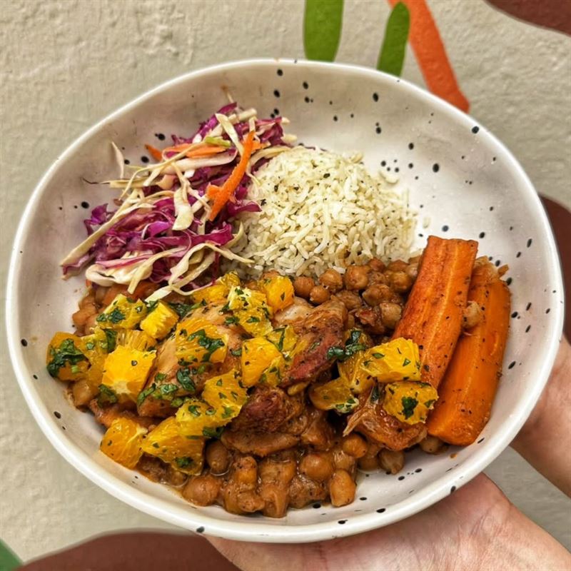 Nestled on Australia Street opposite the Newtown Court House, Say It With Lentil is a warm, unassuming nook in the city’s hum. Its signage is modest, its presence understated - a clean facade with just enough colour to hint at what lies within. Step inside and the air shifts: mellow lighting, earth-toned walls and long communal tables encourage conversation over solitude. Plates emerge thick with legumes, pulses mingling with crisp greens, grains and spices – hearty and nourishing. Here, food feels like home: generous, honest, quietly bold and the aroma of cumin, turmeric and coconut lingers in the air. Perhaps begin with sweet and sour lentil jaffles and kasundi, before mains like berbere chicken with carrots, chickpeas, orange coriander salsa, herbed rice and rainbow slaw.