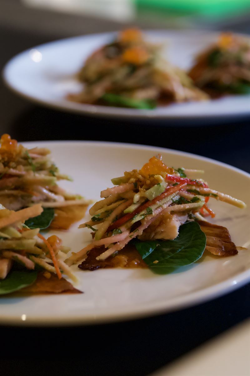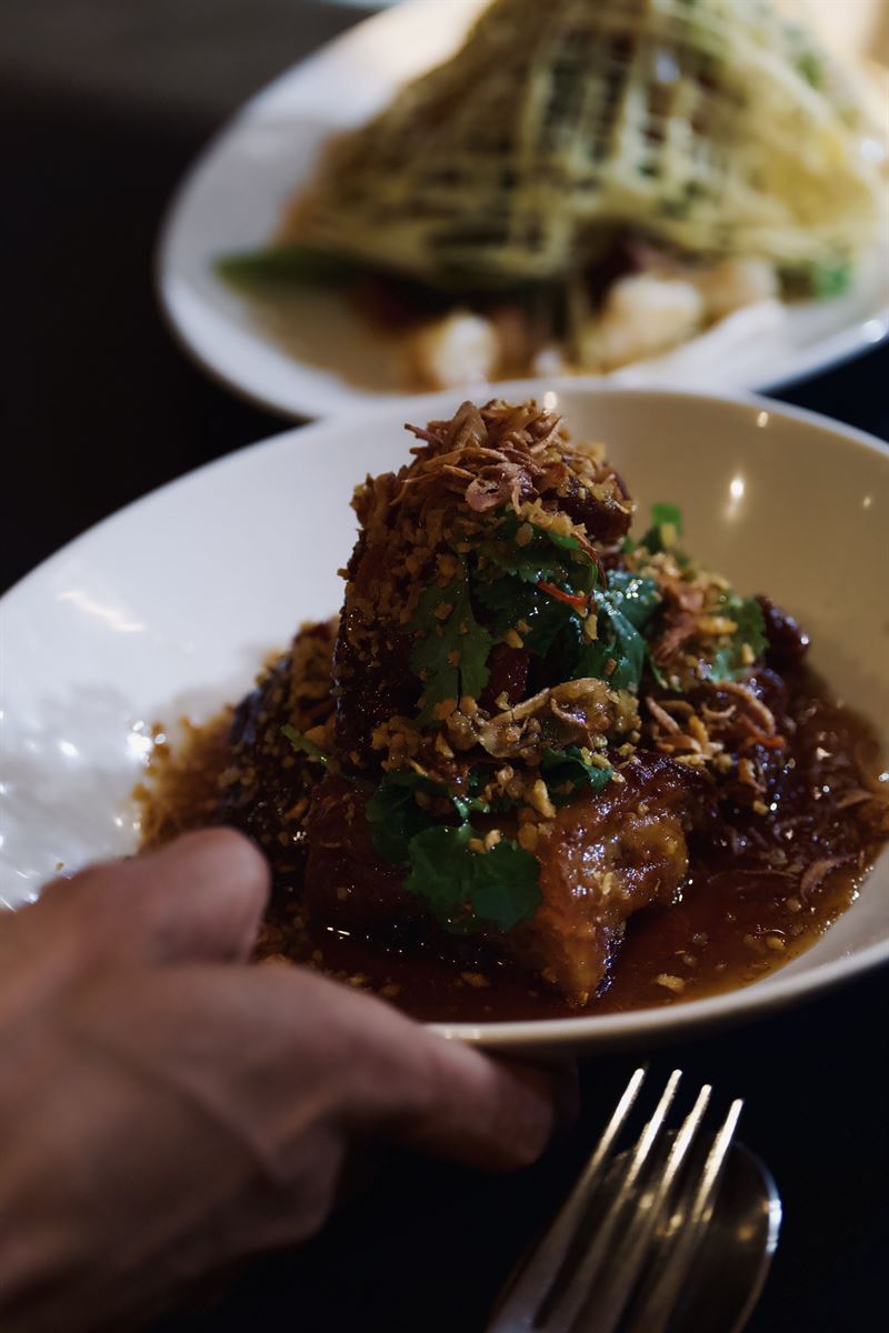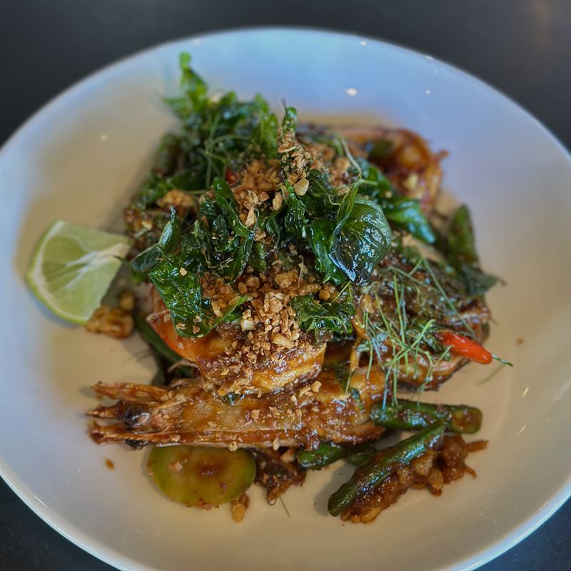 Whole crispy fish, caramelised turmeric, pineapple, chilli and Thai basil.
