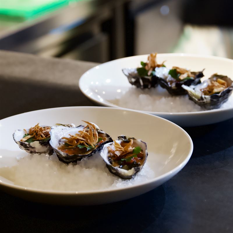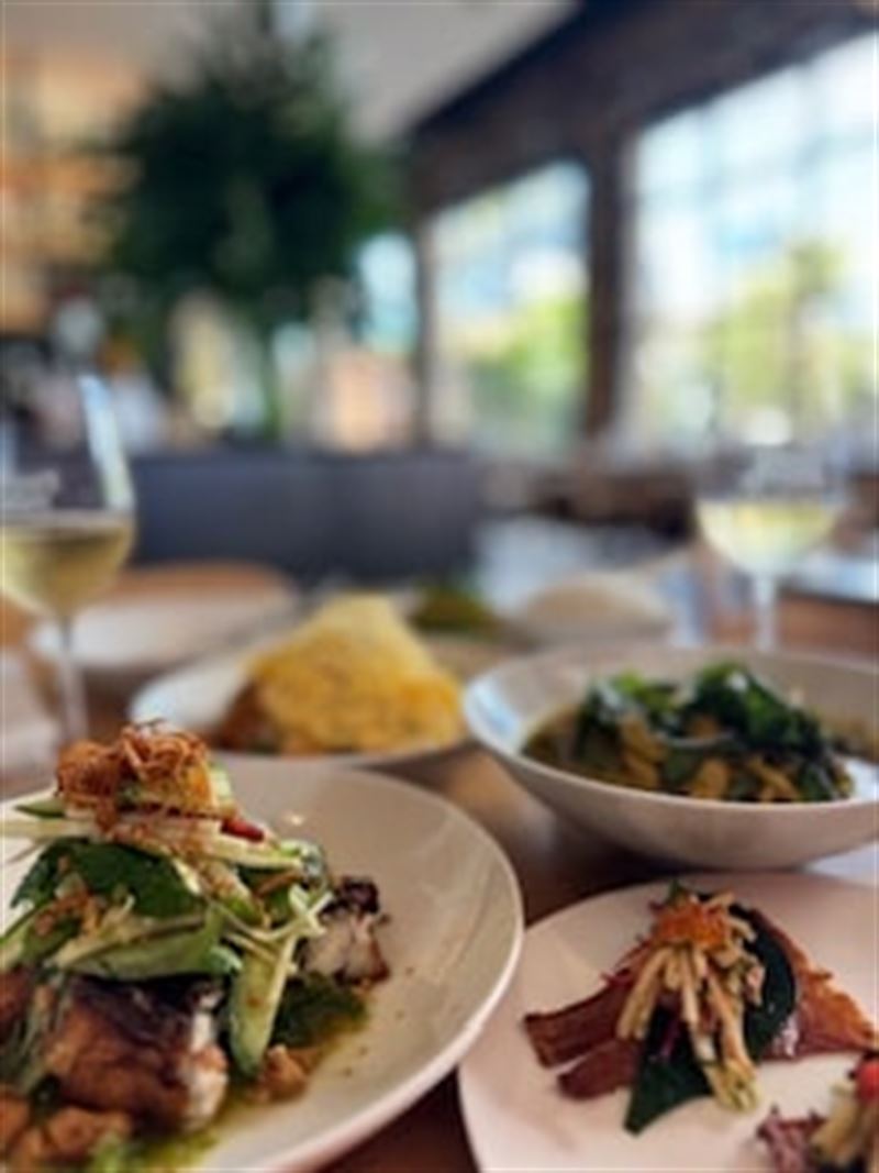Expect modern Asian cuisine on the plate at Short Grain by Martin Boetz on Marshall Street in Fortitude Valley. This Brisbane restaurant delivers a warm and inviting space, set within the beautiful brick walls of a heritage-listed building, formerly a clothing factory and Asian food store. Banquette seating runs the length of the room under large windows and the walls feature modern art by Vicki Lee Lee, bathed in natural light. Wooden tables are minimally set until they fill with fragrant Thai-inspired dishes Chef is known for; begin with crispy soft-shell crab, green mango, mint, roasted rice and tamarind dressing. For the main, delve into braised duck massaman curry with potato, onion, peanuts and blood orange juice, or caramelised pork hock, fried garlic, eschalots and chilli vinegar.
