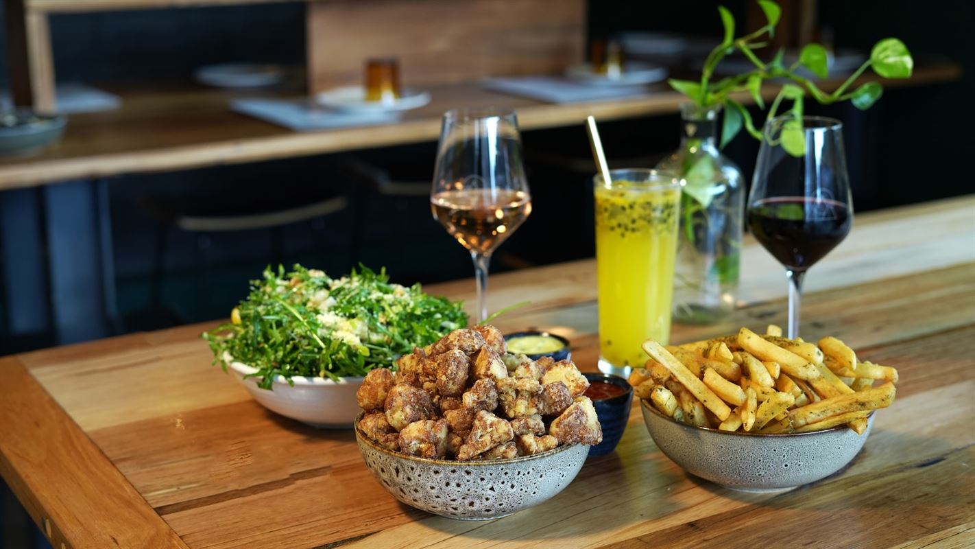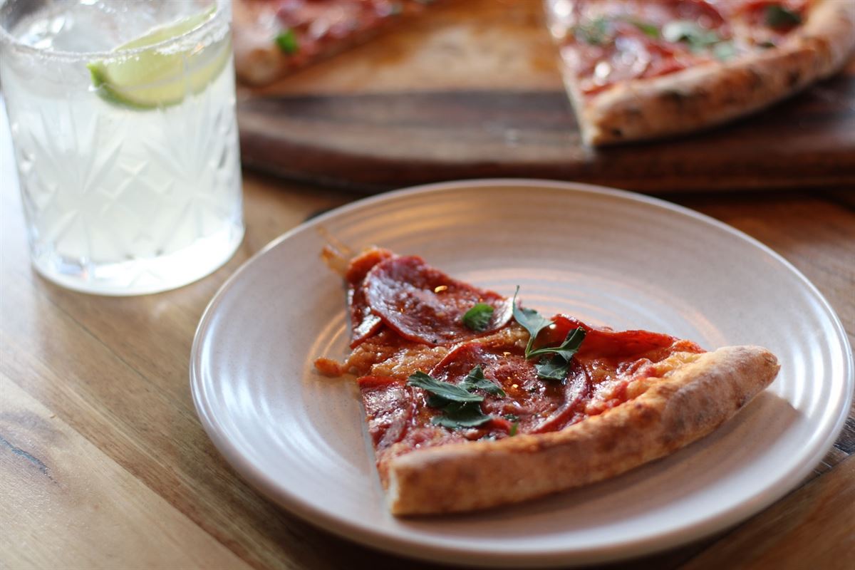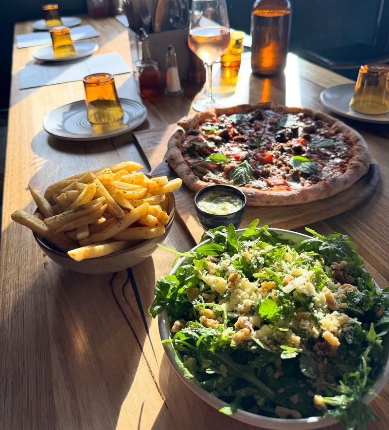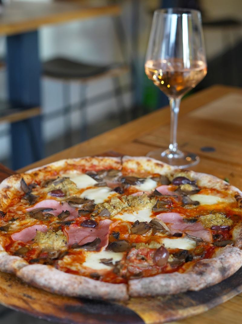 Small Print Pizza Bar on High Street in Windsor hums with effortless energy — a neighbourhood favourite that feels both modern and unpretentious. The interior blends rustic timber and polished concrete, anchored by the warmth of a glowing pizza oven. The aroma of slow-fermented dough fills the space as staff move with easy rhythm between the bar and the kitchen. The atmosphere invites lingering — friends clustered around communal tables, soft chatter floating beneath mellow music — this is a place where time slows and simple flavours shine. Pizzas emerge crisp and smoky, topped with seasonal produce; think slices like slow-cooked lamb, mozzarella, onion, cherry tomato, yoghurt, mint and chilli oil. Vegetarians opt for potato, onion, rosemary, goats’ cheese and mozzarella on a white base.