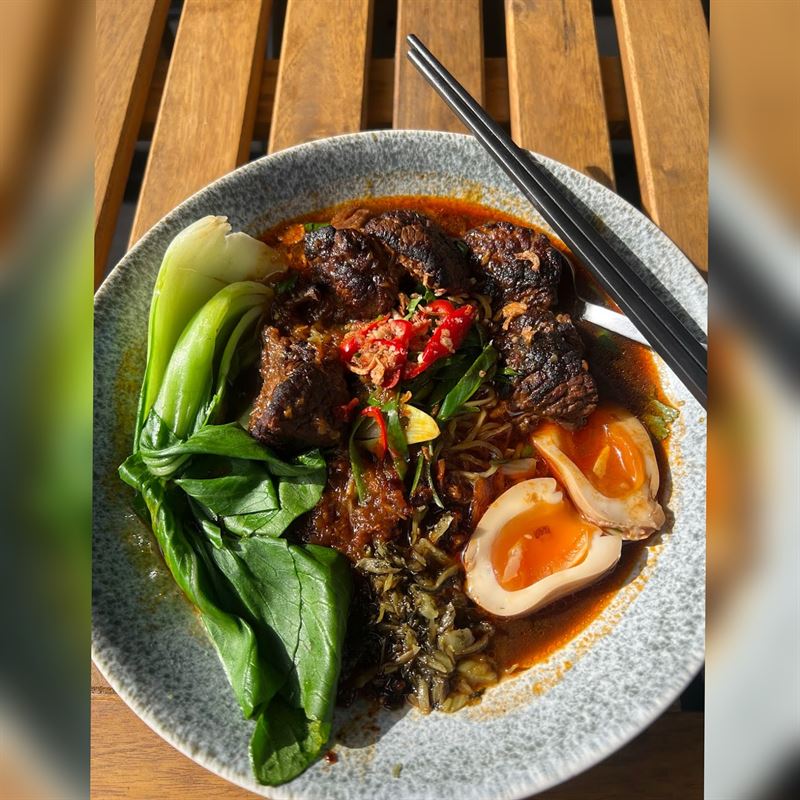Nestled on Pakington Street in Geelong West, Sodi?Cafe is a lively destination where morning light carries the rich aroma of artisan coffee and fresh baking. With its mix of timber surfaces, leafy green plants and the subtle hum of city edge, the space feels both relaxed and stylish. The kitchen delivers a vibrant range of dishes - from inventive shakes and smoothies to smashed avocado with lemon curd and black sesame, or eggs with crispy shallots and pea-purée. Dine in the evening on Thursday, Friday and Saturday nights, starting with chicken and prawn spring rolls, with pickles, lettuce, cucumber and nuoc mam. For the main, try wok-tossed egg noodles with prawn, calamari, bok choy, carrot and fried shallots, or char siu chicken rice, sunny-side egg, house pickles and nuoc mam dressing.