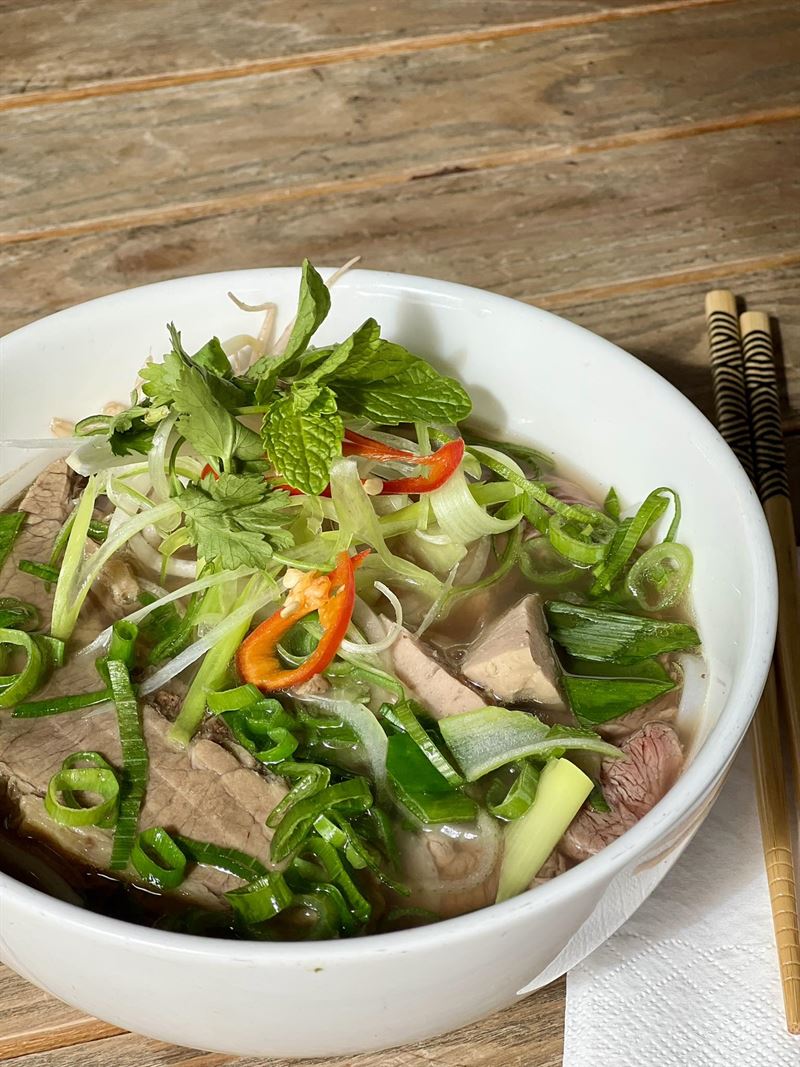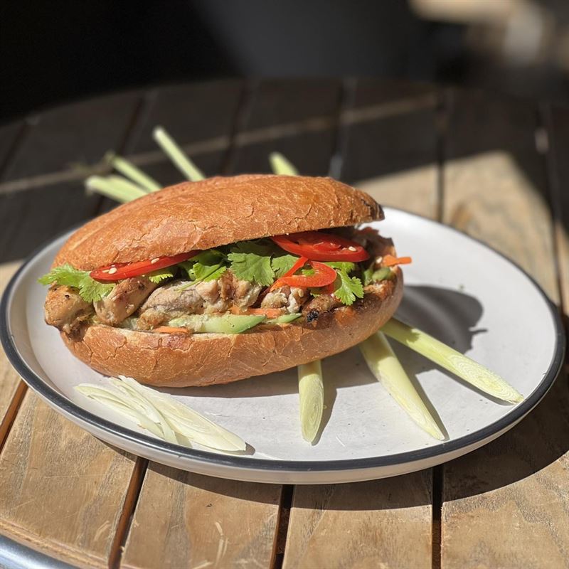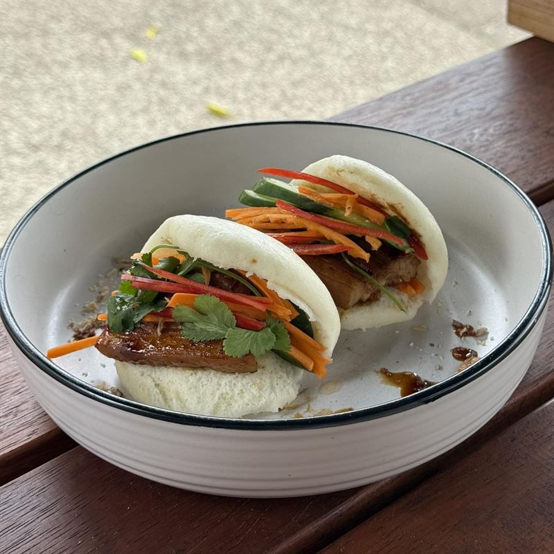 Fluffy steamed bao buns stuffed with slow-cooked pork belly, vegetables and herbs.