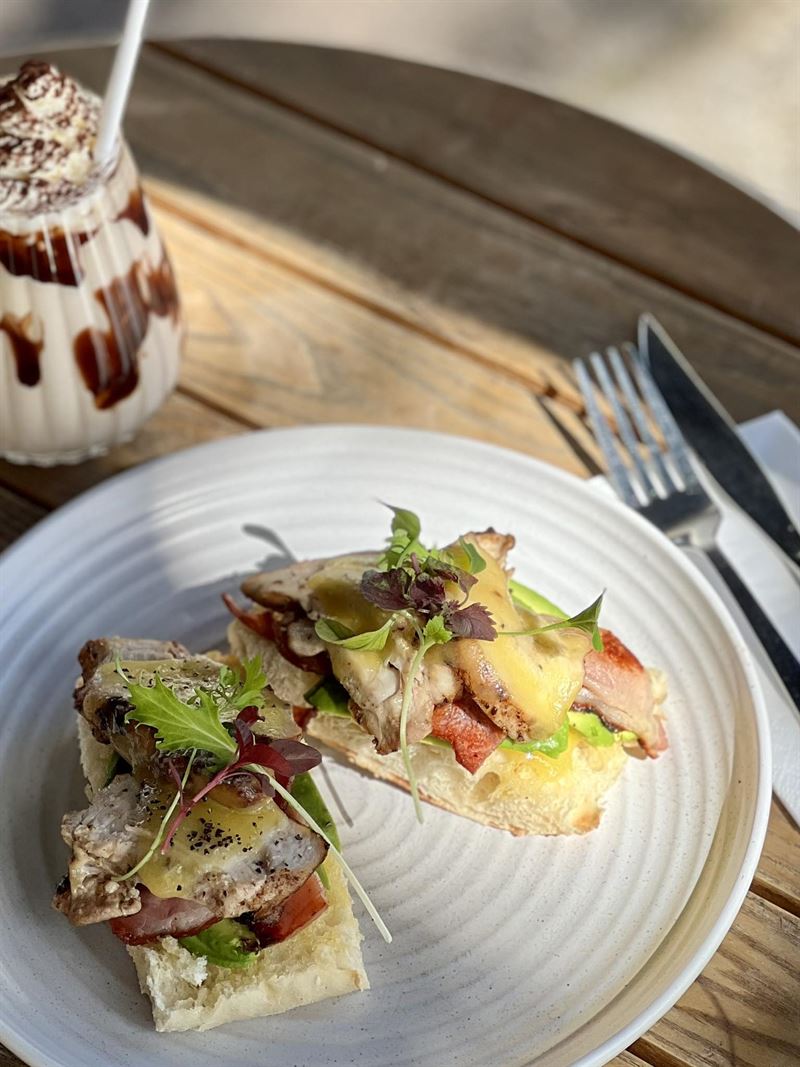 Nestled in the heart of Alstonville, The Crossing on Main Street blends old-world charm with a lively, contemporary edge. This welcoming venue exudes rustic charm with timber, brick and natural light creating an inviting warmth; while inside, the mood is relaxed with the hum of conversation mingling with the aroma of fresh coffee and Modern Australian dishes. From a menu celebrating local produce, crafted with creativity and care, think choices like a chicken open melt to fuel up for the day ahead, served with bacon and fresh avocado. Perhaps wrap your hands around a roast pork belly banh mi with chicken pâté, mayo, cucumber, coriander, shallots, pickled carrot, chilli and housemade special sauce, or devour a savoury zucchini, sweet corn and feta muffin with a brew of choice.