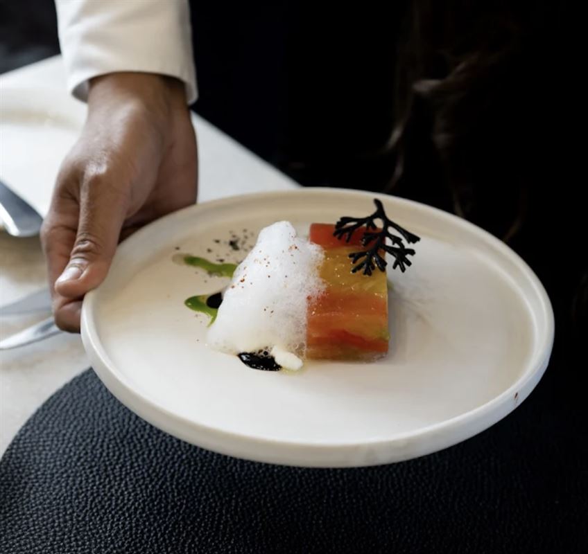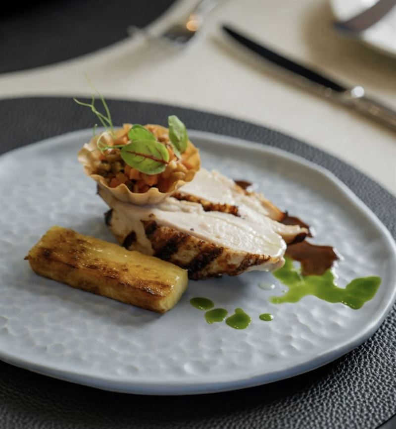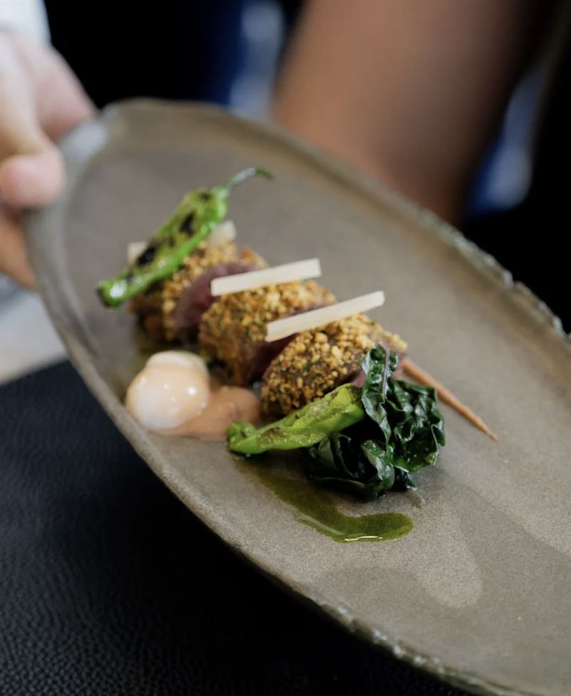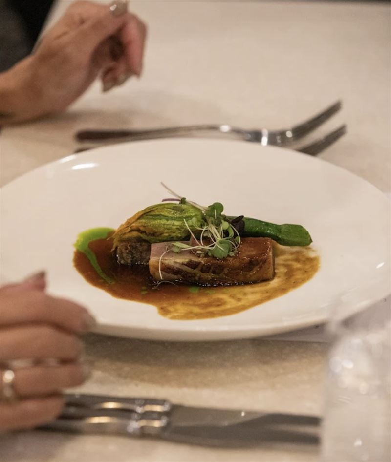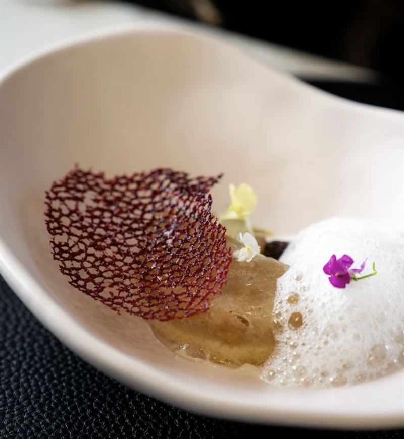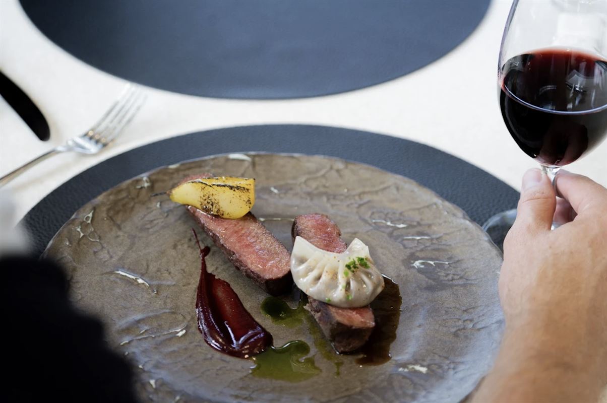 1824 Wagyu Beef Short Ribs served with macadamia, oxtail dumpling, beetroot and celery root.