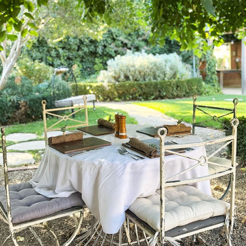 I diner here on a Saturday for lunch with my family from Melbourne and we sat in the courtyard under the tree. The table was set beautifully, with a white tablecloth, and attention to detail. Our server was attentive and efficient and the pasta dishes we ordered were beautifully plated. I highly recommend The Rabbit Hole Inn at Harvest Home for the atmosphere, service and delicious and locally sourced food.