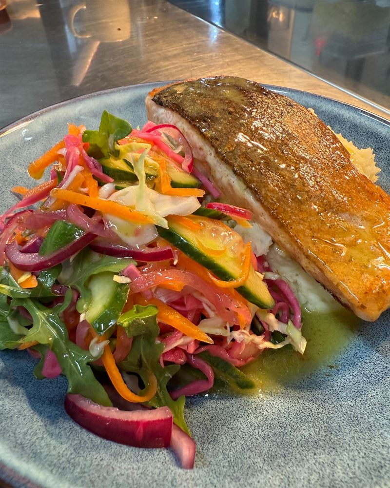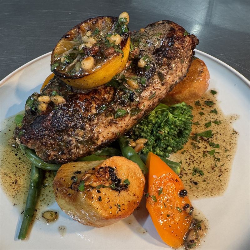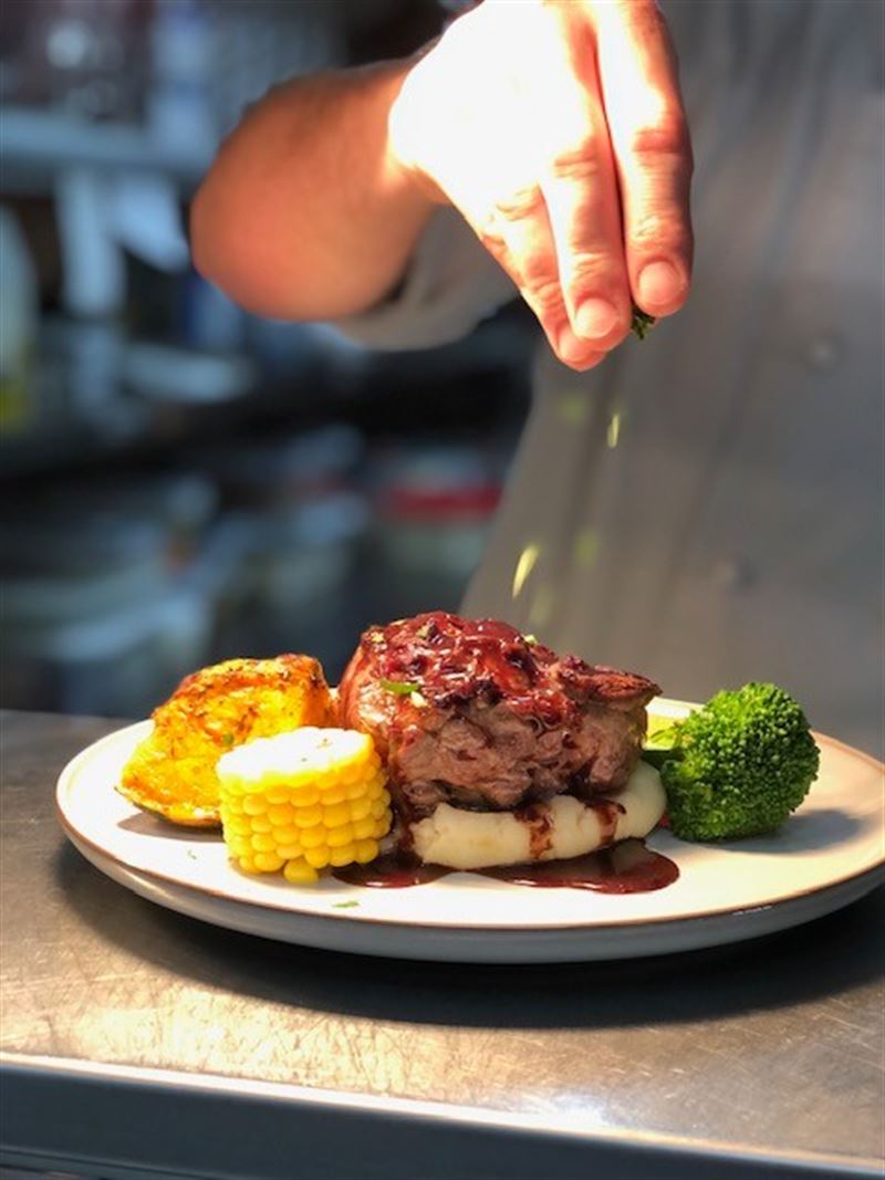 Nestled within The Crossing Motel, The Roundhouse Restaurant on Seignior Street in Junee offers a blend of culinary excellence and relaxed hospitality. This dining destination exudes an atmosphere of warmth and sophistication, whether it’s a romantic dinner, or a gathering of friends, expect the ideal backdrop for an unforgettable experience. Each dish on the menu is crafted to tantalise your taste buds and leave you wanting more – perhaps start with tender smoky pork ribs in rich bourbon sauce, served with a fresh, tangy slaw. For the main affair, delve into pan-seared crispy skin Atlantic salmon, pickled cucumber salad and zesty citrus-dill sauce; or pork fillet stuffed with chestnuts, sage and bacon, served with spiced apple chutney for the perfect balance of savoury and sweet.