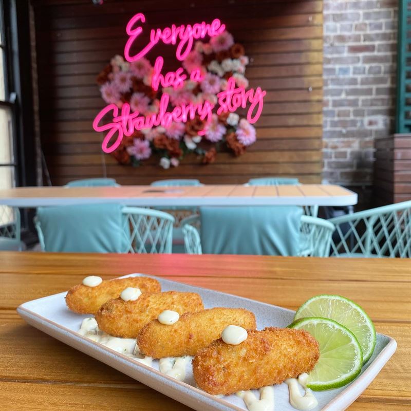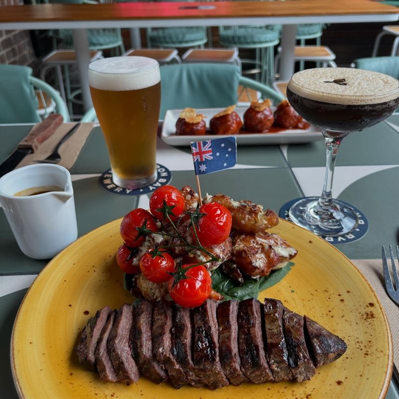 Nestled on lively Elizabeth Street in Surry Hills, The Strawberry feels like a playful oasis that hums with charm and colour. Its atmosphere is warm and welcoming, layered with character in every detail - from sunlit windows spilling across timber accents to pops of bold artwork and quirky touches that make the space feel alive. The energy here is both vibrant and comforting, the kind of place where you can linger over conversation or simply sink into the buzz of the neighbourhood. Start a memorable meal with salt and pepper squid and tequila aioli, or southern fried chicken wings; before mains like beer-battered barramundi, tartar sauce, lemon, chips and salad, or a rump steak sandwich with cheese, onion jam, tomato, rocket, BBQ sauce and aioli, on sourdough, washed down with an icy beer.