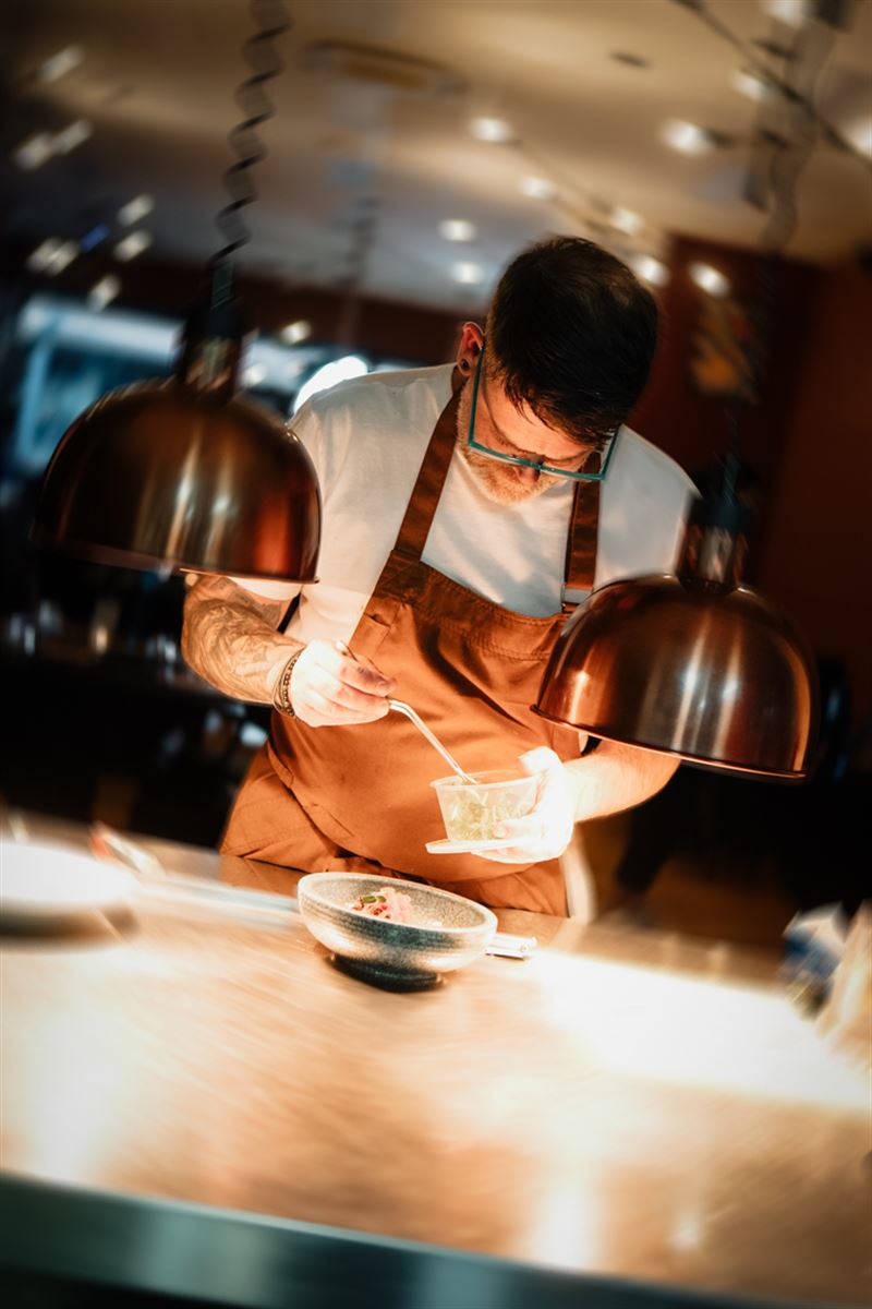 BBQ Tasmanian wild-caught octopus, harissa mayo, new season potatoes and pickled red onion.